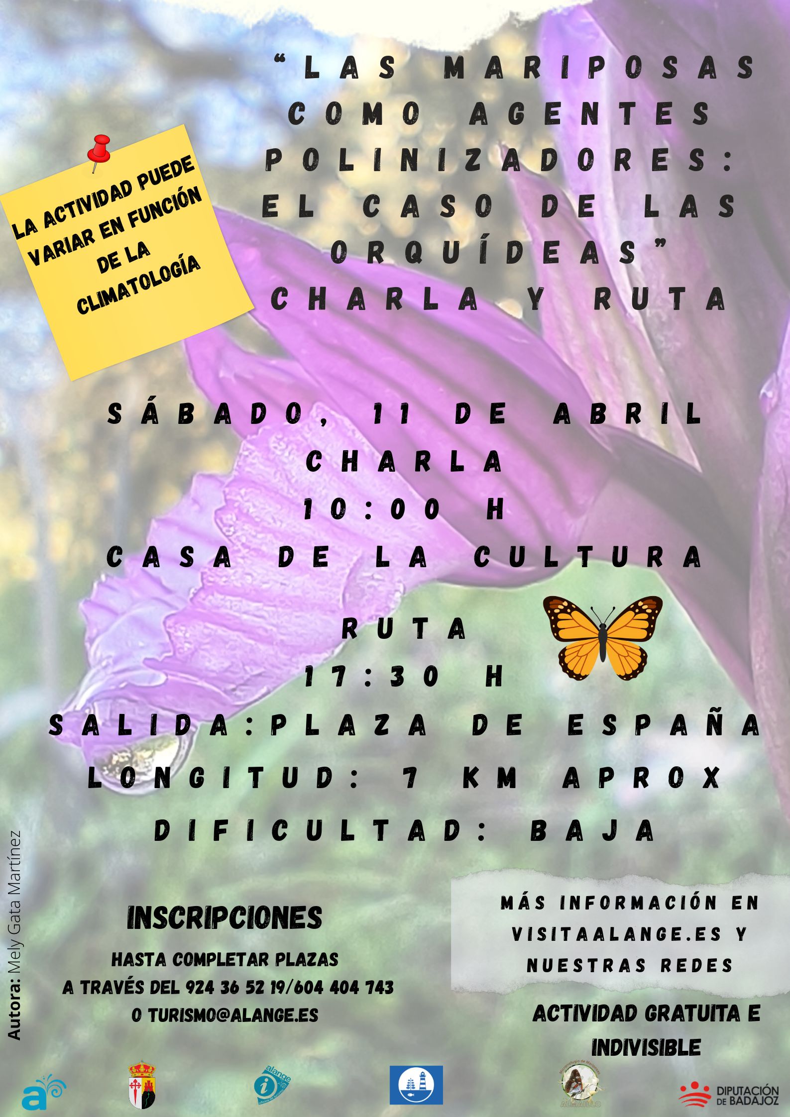 El próximo sábado, 11 de abril, tendrá lugar en Alange una interesante actividad centrada en el papel de las mariposas como agentes polinizadores, con especial atención al caso de las orquídeas.