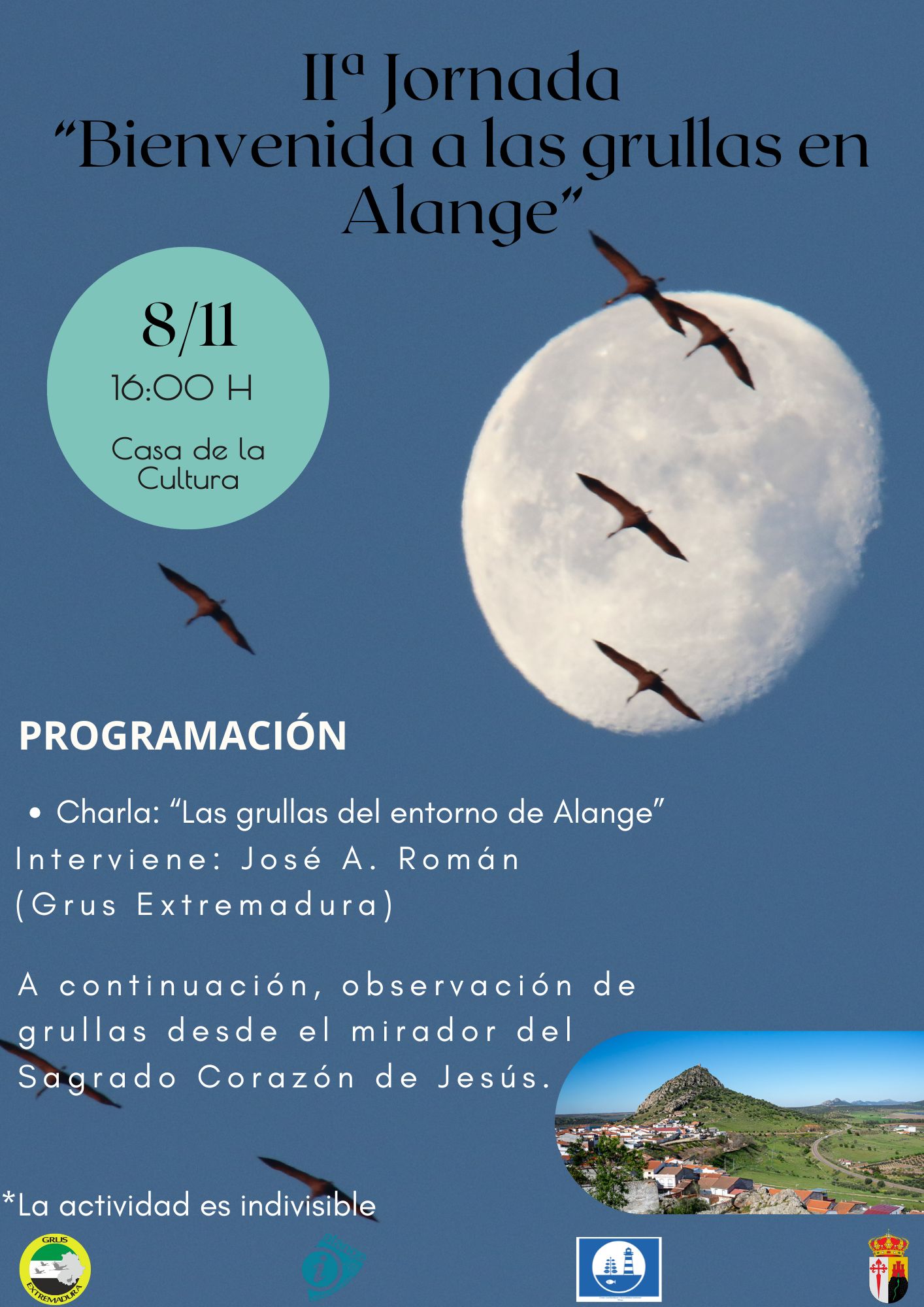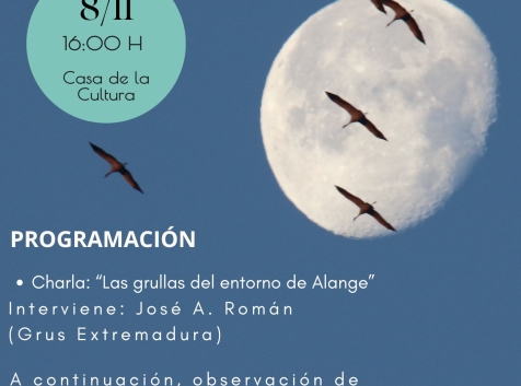El sábado 8 de noviembre, a las 16:00 h, en la Casa de la Cultura de Alange, José A. Román ofrecerá la charla “Las grullas del entorno de Alange”.